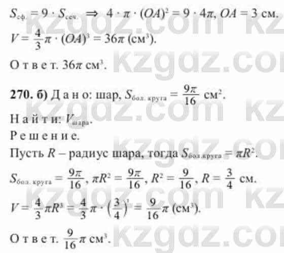 Подробное решение, ответы и гдз Геометрия Солтан 11 ОГН класс 2020 Келешек 2030 III. Объемы тела, 20. Объем шара., Упражнение 270. Для школьников из Казахстана, Узбекистана и России.