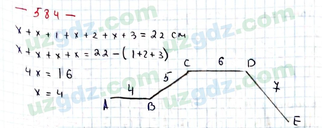 Подробное решение, ответы и гдз Математика Хайдаров 5 класс 2020 Huquq va Jamiyat Глава IV. Геометрические фигуры, 33. Ломаная и ее длина, Упражнение 584. Для школьников из Казахстана, Узбекистана и России.
