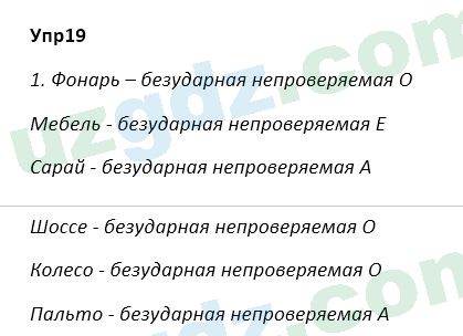 § 2. Состав слова. Безударные гласные в корне слова, проверяемые ударением. Непроверяемые гласные в корне, Упражнение, 19