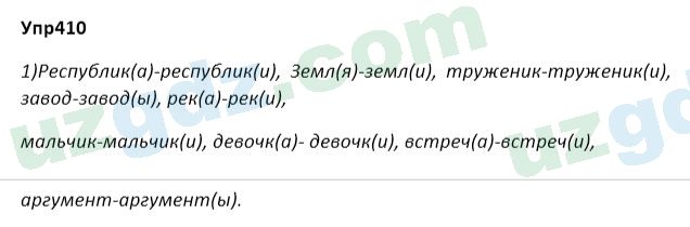 Подробное решение, ответы и гдз Русский язык Зеленина 5 класс 2020 "Узбекистан" § 68. Число имени существительного, Упражнение 410. Для школьников из Казахстана, Узбекистана и России.