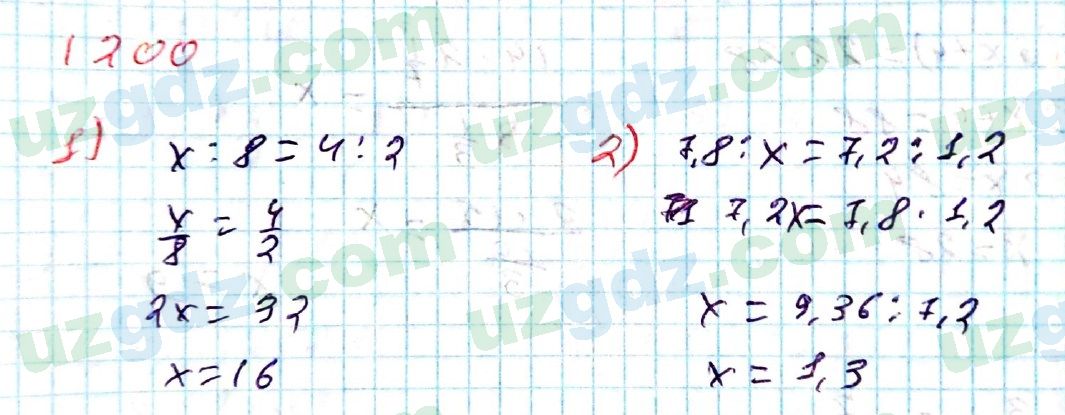 Подробное решение, ответы и гдз Математика Мирзаахмедов 6 класс 2017 O'QITUVCHF ИТОГОВОЕ ПОВТОРЕНИЕ, 4. Отношение и пропорция, Итоговое повторение 1200. Для школьников из Казахстана, Узбекистана и России.