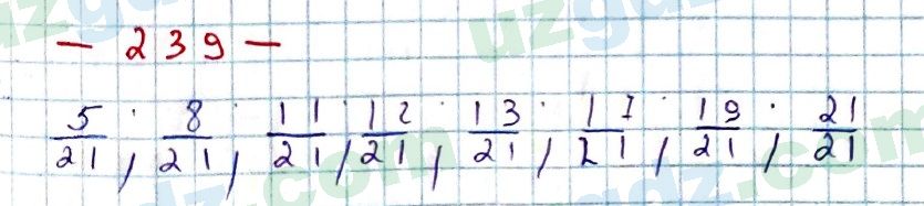 ГЛАВА II. СЛОЖЕНИЕ И ВЫЧИТАНИЕ ДРОБЕЙ С РАЗНЫМИ ЗНАМЕНАТЕЛЯМИ, Тема 27—28. Сравнение дробей с разными знаменателями, Упражнение, 239