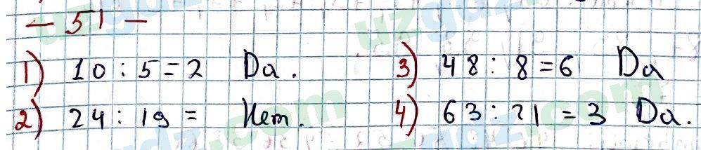 ГЛАВА I. ПРИЗНАКИ ДЕЛИМОСТИ ЧИСЕЛ, Тема 1—2.Делители и кратные чисел 28, Упражнение, 51