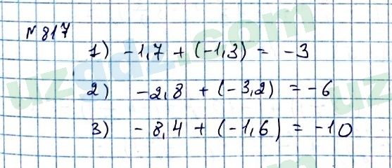 ГЛАВА VI. СЛОЖЕНИЕ И ВЫЧИТАНИЕ ПОЛОЖИТЕЛЬНЫХ И ОТРИЦАТЕЛЬНЫХ ЧИСЕЛ, Тема 95—97. Сложение отрицательных чисел, Упражнение, 817