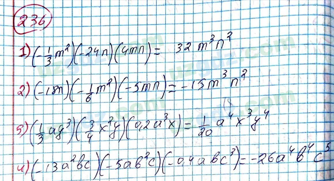 Подробное решение, ответы и гдз Алгебра Алимов 7 класс 2017 O'QITUVCHF Глава III. ОДНОЧЛЕНЫ И МНОГОЧЛЕНЫ, § 12. Умножение одночленов, Упражнение 236. Для школьников из Казахстана, Узбекистана и России.