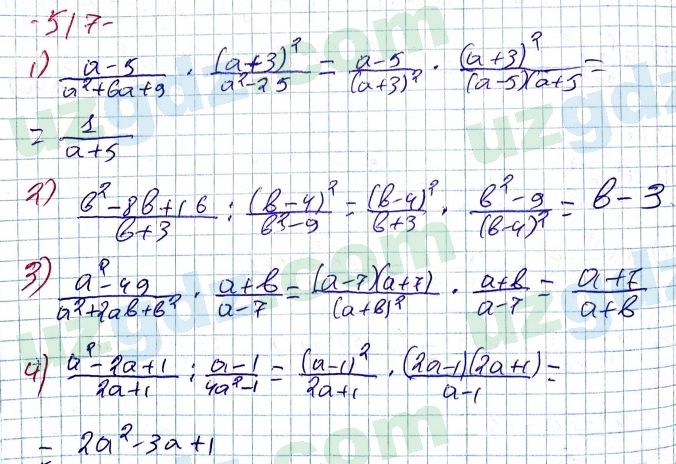 Глава V. АЛГЕБРАИЧЕСКИЕ ДРОБИ, § 27. Умножение и деление алгебраических дробей, Упражнение, 517