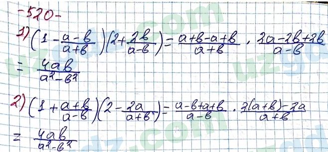 Глава V. АЛГЕБРАИЧЕСКИЕ ДРОБИ, § 28. Совместные действия над алгебраическими дробями Упражнения к главе V, Упражнение, 520