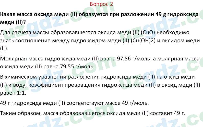 Подробное решение, ответы и гдз Химия Аскаров И. 7 класс 2022 Ташкент: Республиканский центр образования Глава VI. Вода, 6.8. Решение задач, Вопрос 2. Для школьников из Казахстана, Узбекистана и России.