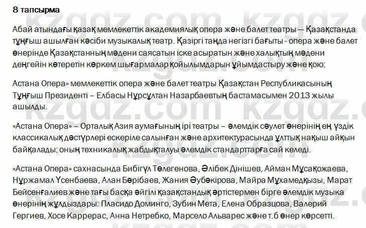 8. МУЗЫКА. ҚАЗАҚТЫҢ КИЕЛІ ДОМБЫРАСЫ. I. Жансүгіров «Күйші» поэмасы (үзінді), 9-10-сабақ. Опера театрына барамын, Упражнение, 8
