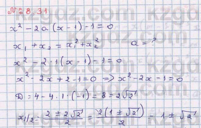 Подробное решение, ответы и гдз Алгебра Абылкасымова 8 класс 2018 Мектеп Глава 2. КВАДРАТНЫЕ УРАВНЕНИЯ, § 8. Теорема Виета, Упражнение 8.31. Для школьников из Казахстана, Узбекистана и России.