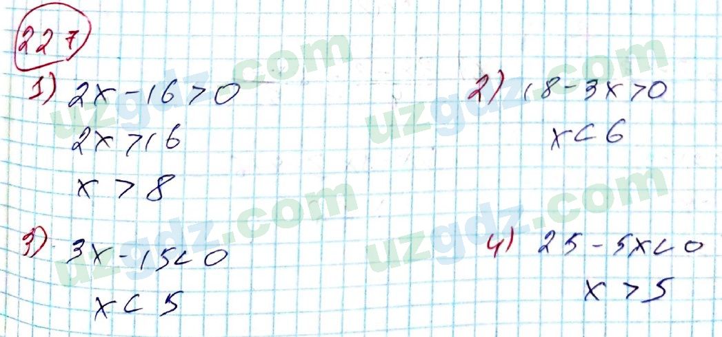 Подробное решение, ответы и гдз Алгебра Алимов 8 класс 2019 O'QITUVCHF ГЛАВА II НЕРАВЕНСТВА, §15. Неравенство с одним неизвестным, Упражнение 227. Для школьников из Казахстана, Узбекистана и России.