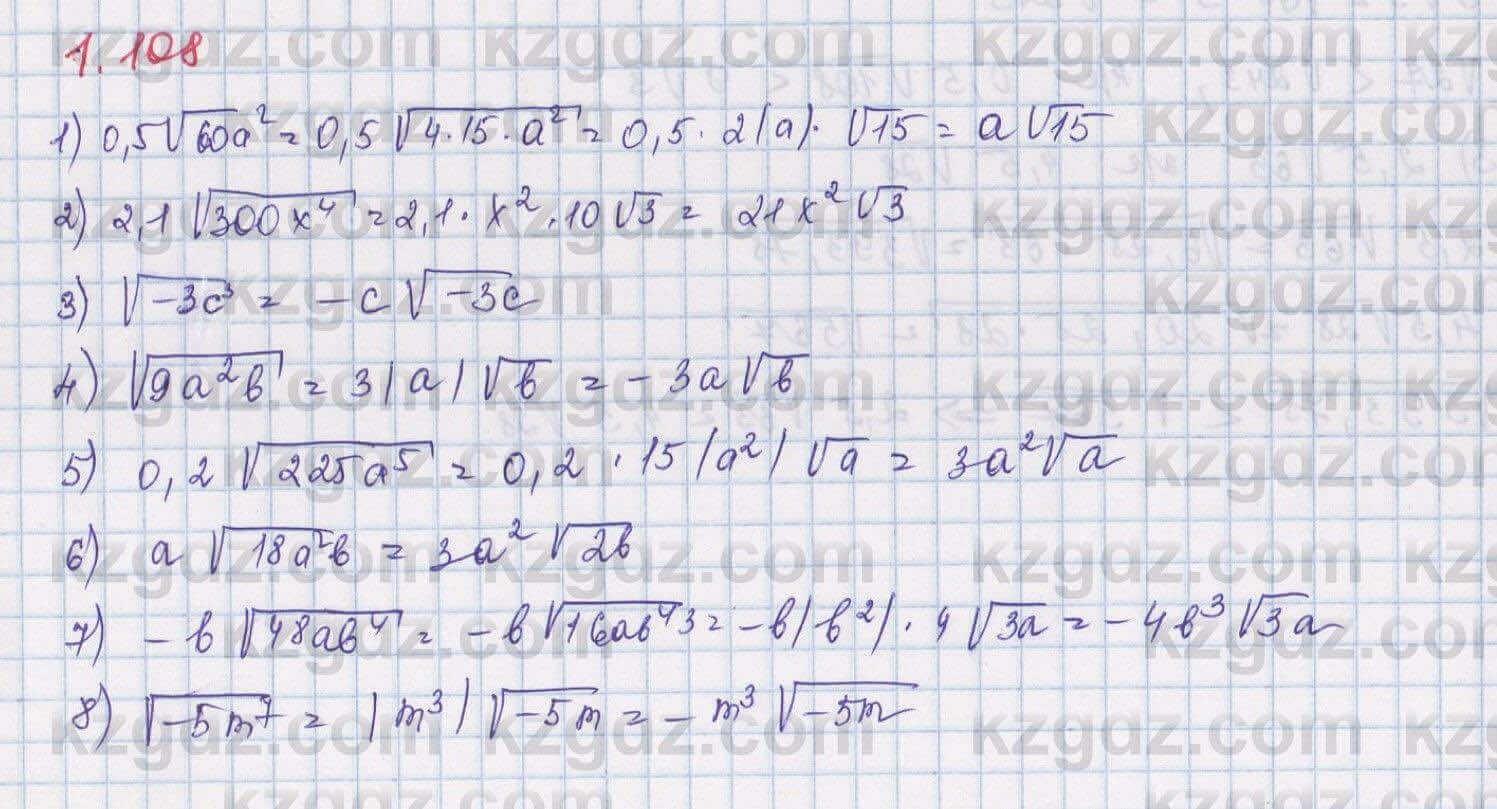 ГДЗ Алгебра Шыныбеков 8 класс 2018 Упражнение 1.108