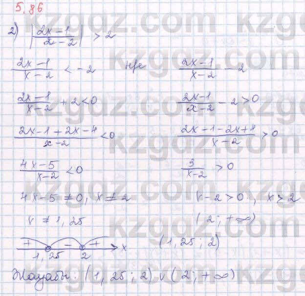 Подробное решение, ответы и гдз Алгебра Шыныбеков 8 класс 2018 Атамура Раздел 5. Неравенства, 5.3 Рациональные неравенства, Упражнение 5.86. Для школьников из Казахстана, Узбекистана и России.