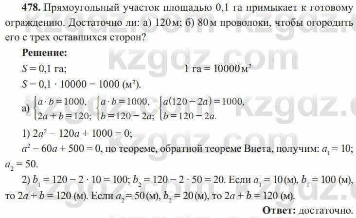 ГДЗ Алгебра Солтан 8 класс 2020 Упражнение 478