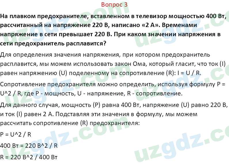 ГДЗ Физика Хабибуллаев П. 8 класс 2019 Вопрос 3