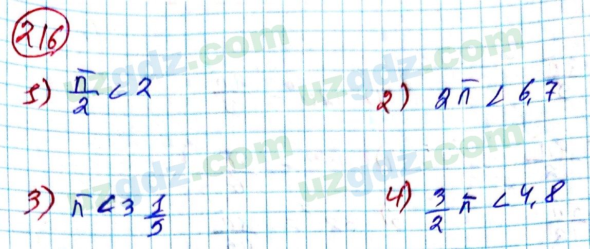 Подробное решение, ответы и гдз Алгебра Алимов 9 класс 2019 O'QITUVCHF Глава III. ЭЛЕМЕНТЫ ТРИГОНОМЕТРИИ, §17. Радианная мера угла, Упражнение 216. Для школьников из Казахстана, Узбекистана и России.