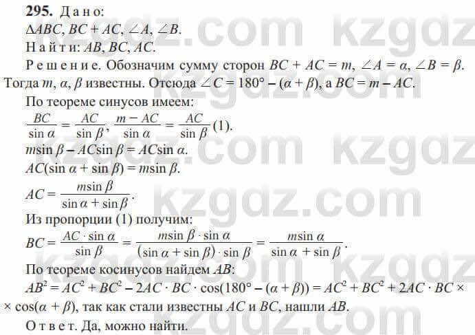 ГДЗ Геометрия Солтан 9 класс 2020 Упражнение 295